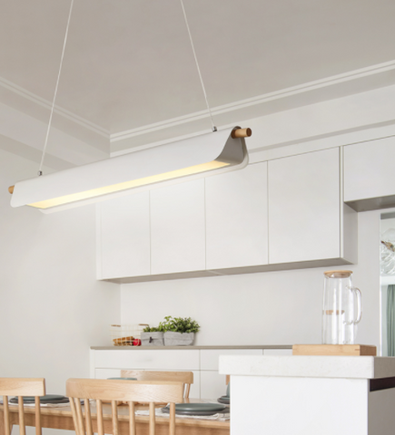 The AKI Linear Hanging LED Lamp combines linear lines and curv...