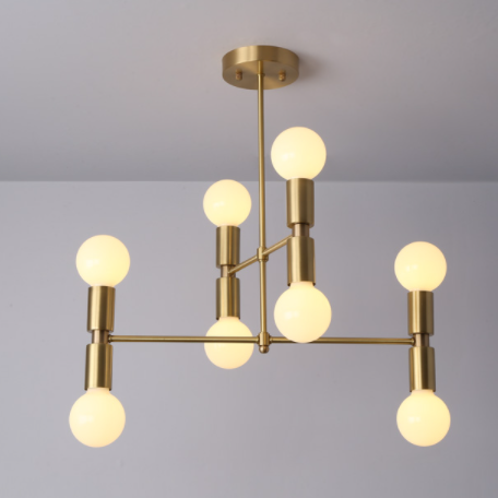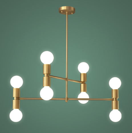 The EZIO Modern Hanging Lamp features a layer structure design with up to 16 bulb holders. The gold body frame can be paired with your choice of bulbs such as globe light bulbs or Edison light bulbs.